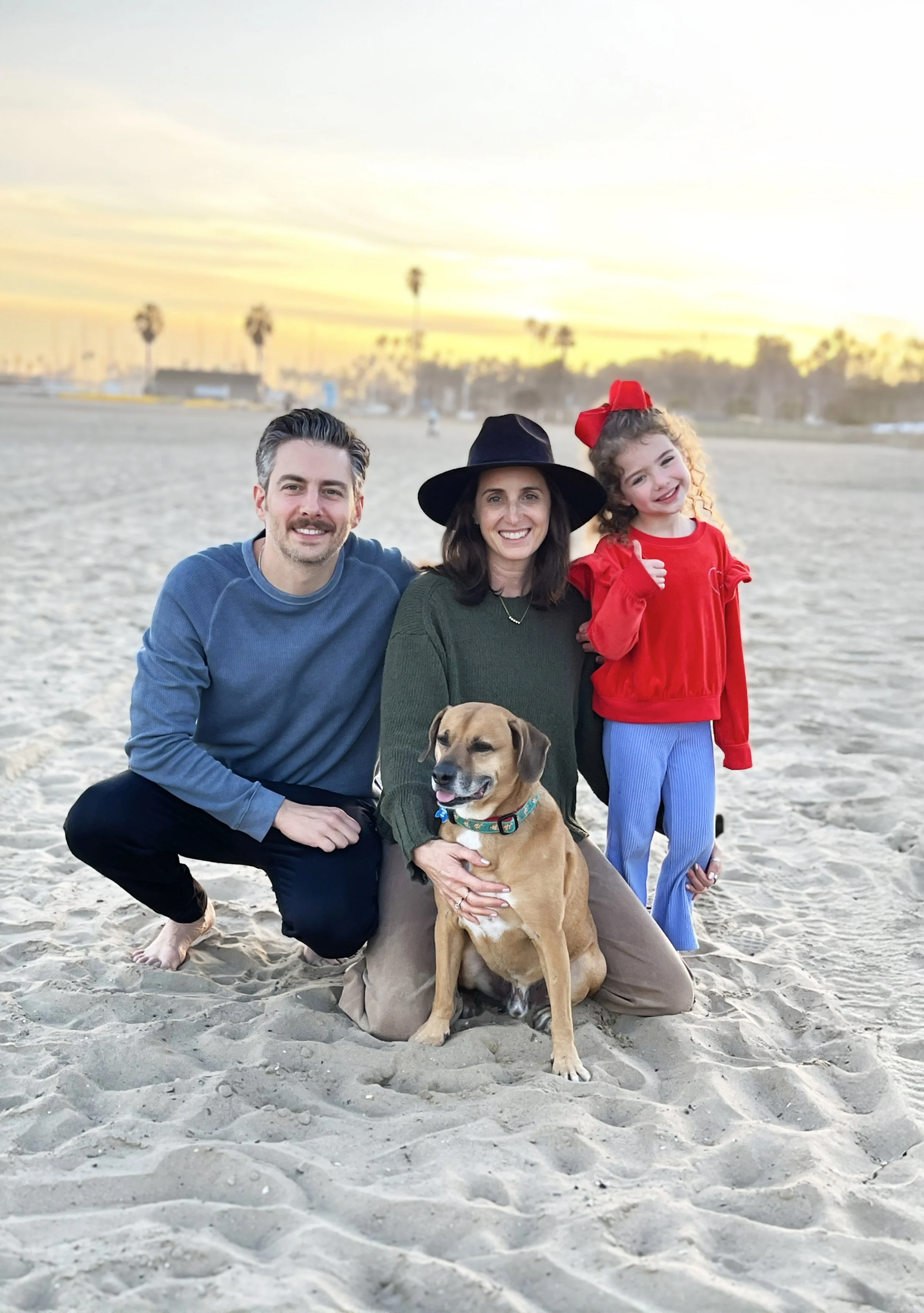 Those images were not ones they already had. Once they recognized what felt true to them, they made a conscious decision to create it. They went to the beach together and intentionally took relaxed, natural photos with their dog, in everyday clothing, with a sunset behind them.